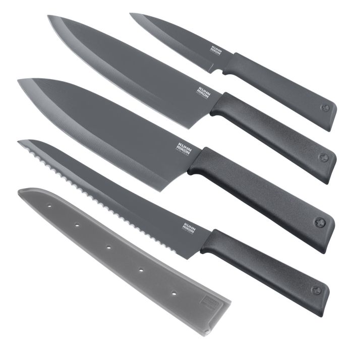 Das Set enthält: Gemüsemesser, Kochmesser, Santokumesser und Brotmesser.
