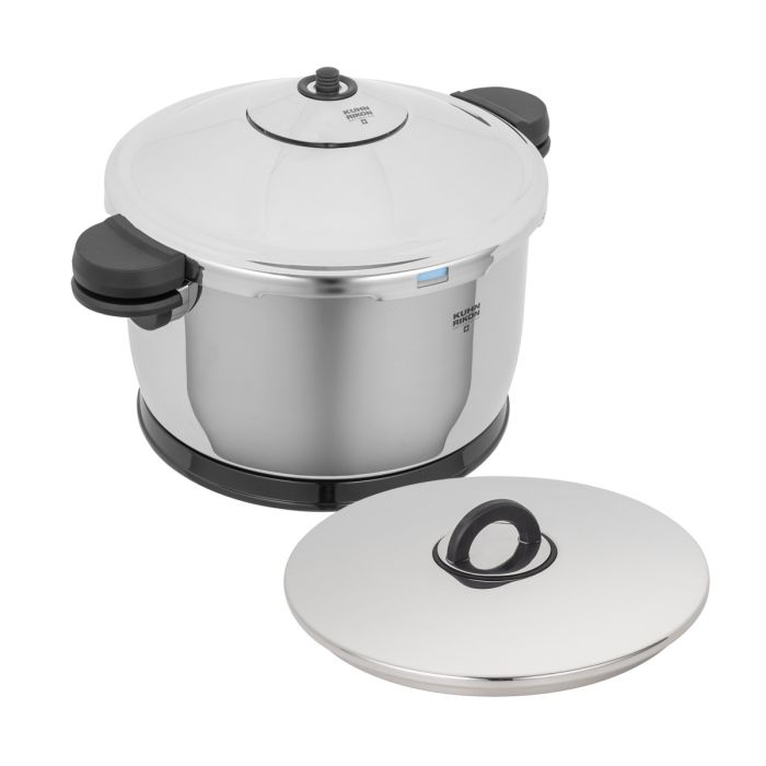 DUROTHERM® PRO BLACK Schnellkochtopf mit zusätzlichem Doppelwand-Deckel. Der Topf kann sowohl als normaler Durotherm wie auch als Schnellkochtopf verwendet werden.