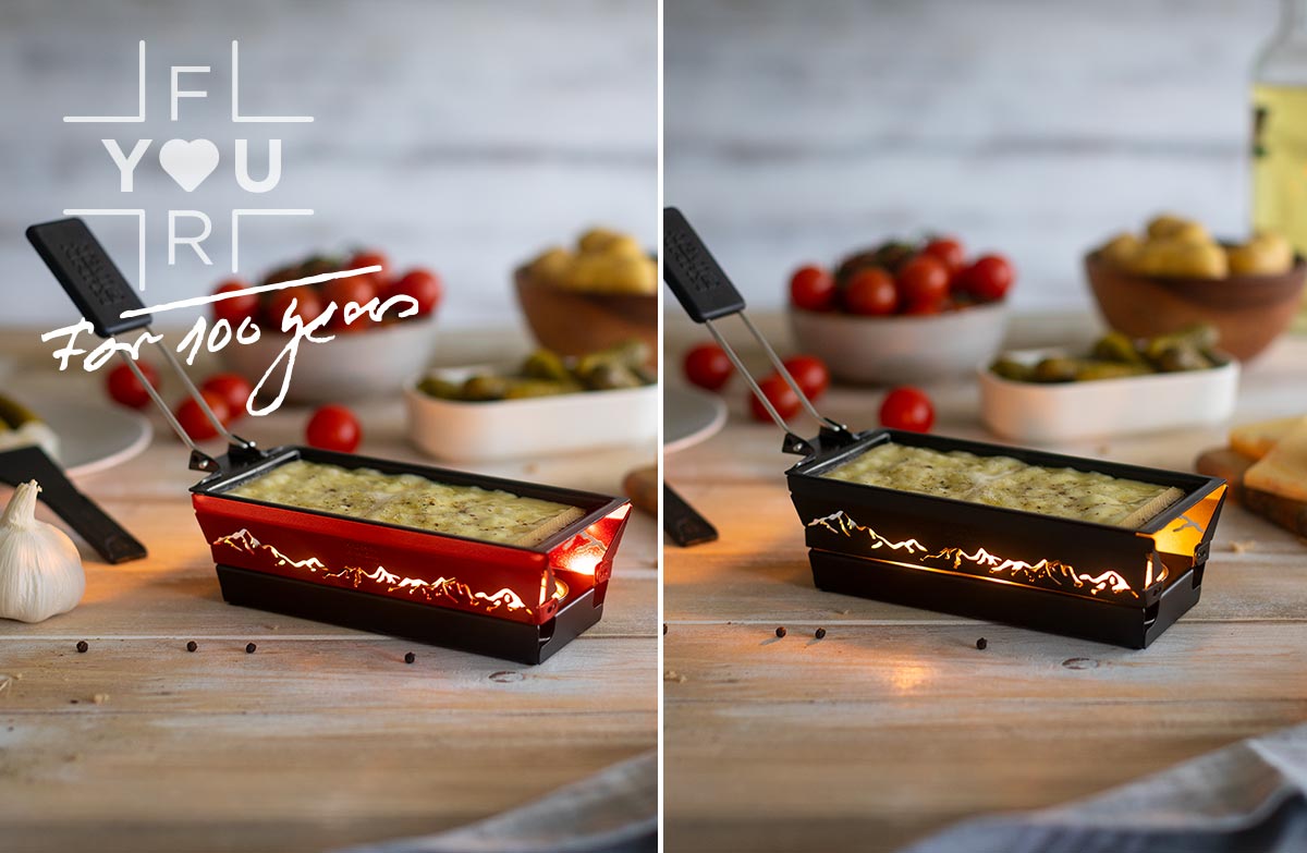 Unsere Mini Raclette-Sets Alpenglühen sorgen für besonders gemütliche Fondue-Abende im Kerzenschein. Kein Käse-Fan? Kein Problem! Die Sets überzeugen auch am Frühstückstisch und werten jeden Brunch auf mit einem leckeren Mini-Rührei ode Mini-Würstchen. Im September zum Jubiläumspreis von CHF 19.26.