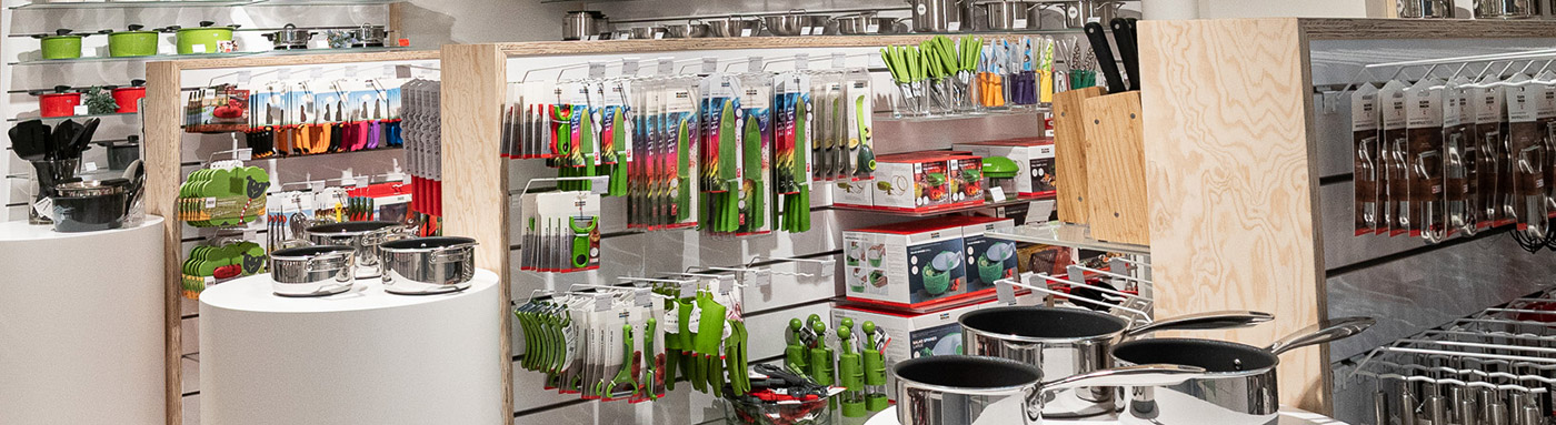 The store covers around 100 m2 and showcases pans, roasting tins, pots, and other products from the brand. The store's range focuses heavily on Swiss-made products: For example, the DUROMATIC® pressure cooker, which is well known and loved throughout Switzerland and was developed and launched by Jacques Kuhn back in 1949. Other typical Kuhn Rikon innovations such as the energy-saving HOTPAN® and DUROTHERM®, the Swiss-made MONTREUX and LOCARNO cookware lines, and the particularly sustainable NEW LIFE® lines can also be found in the store. Last but not least, the artistically hand-painted Rheinfelder ceramic tableware, fondue accessories, and many other useful kitchen gadgets are also available for purchase.