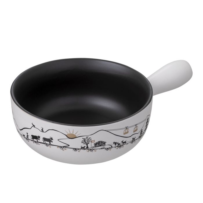 Céramique de haute qualité, forme classique et design moderne : ce caquelon abordable allie style et fonctionnalité au quotidien. Parfait pour tous ceux qui souhaitent allier esthétique alpine et plaisir d'une fondue réussie.