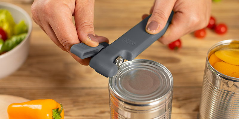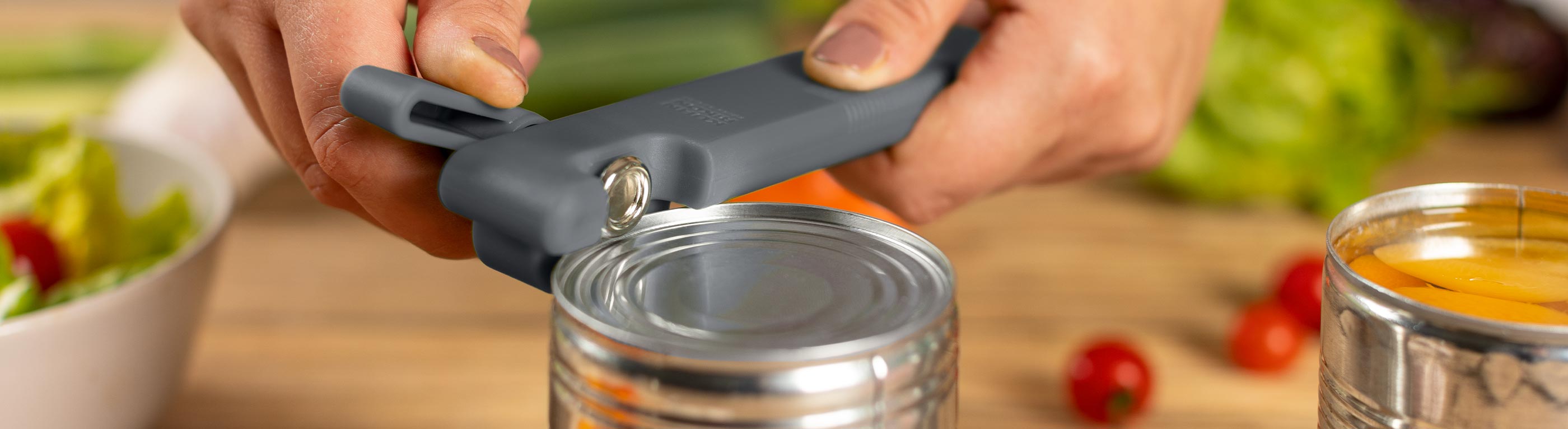 Kompakt, hygienisch und sicher: mit dem kleinen aber äusserst raffinierten Sicherheitsdosenöffner von Kuhn Rikon lassen sich alle haushaltsüblichen Dosen schnell und leicht öffnen.