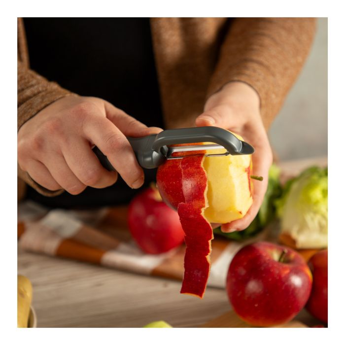 Preparar los alimentos nunca ha sido tan fácil: las cuchillas anchas y afiladas del pelador CLASSIC se deslizan sin esfuerzo por las verduras y frutas. Lisas, dentadas o juliana: cada cuchilla ofrece resultados rápidos y limpios. El saca ojos de patata integrado elimina las pequeñas imperfecciones en un instante.