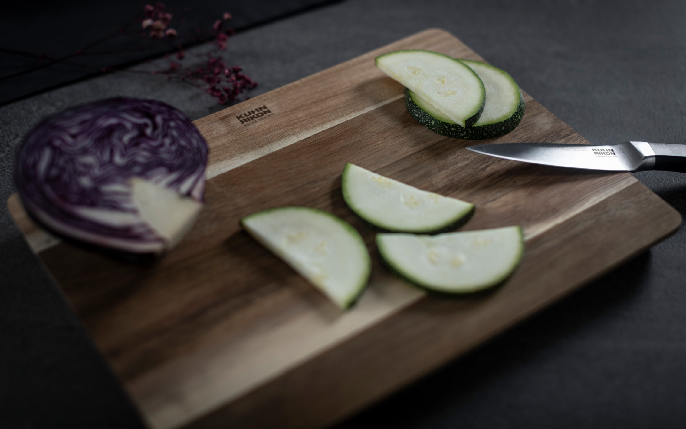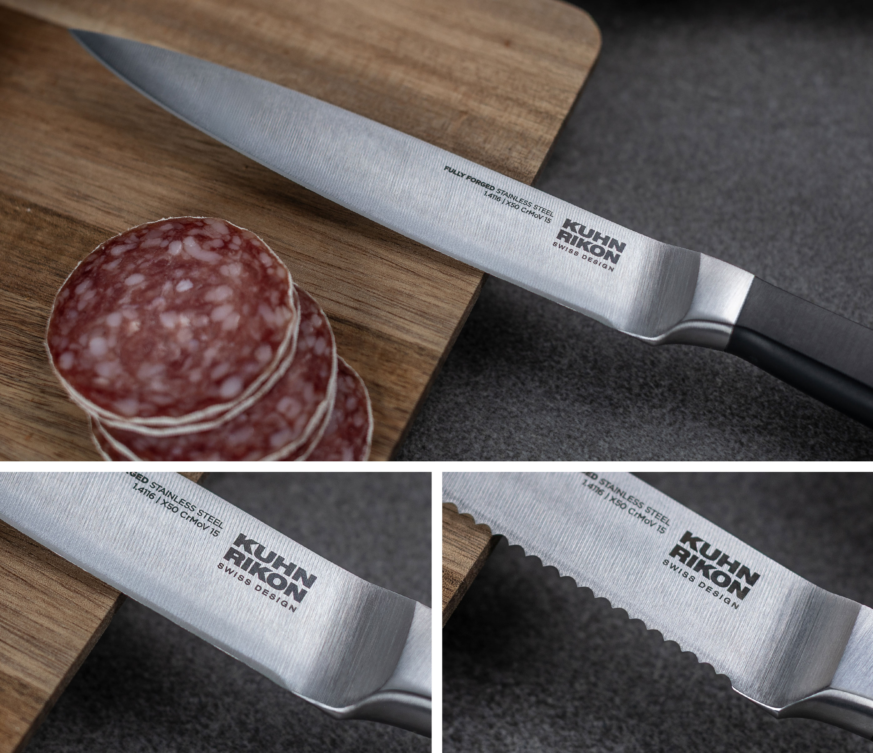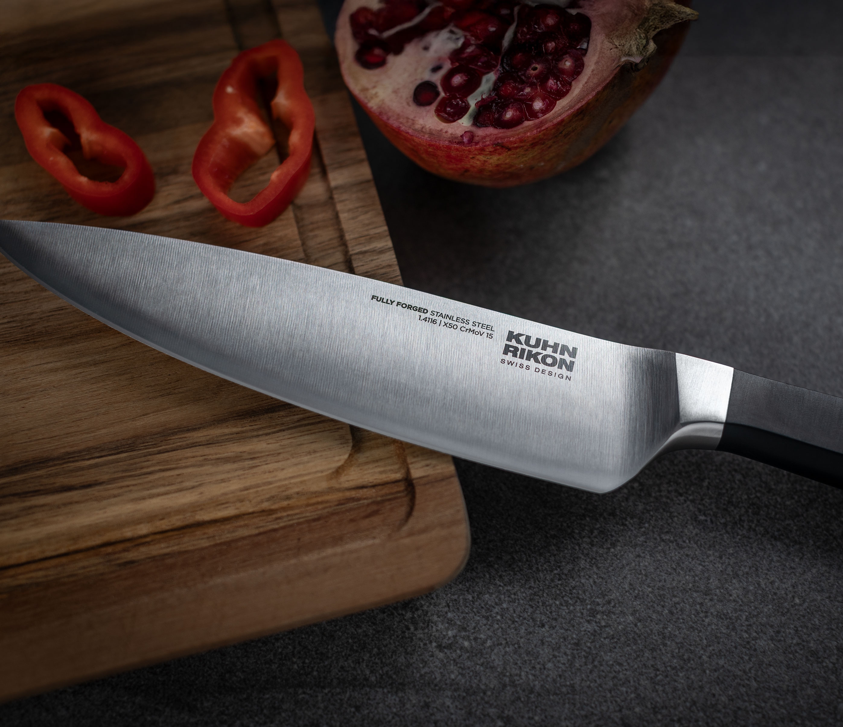Good design is not just about looks. It supports the hand, guides the movement, creates safety – and yet still feels natural. At CULINARY FORGED, aesthetics and function merge into one. Reduced to the essentials, designed for everyday use. You can see it – and feel it with every cut. Developed in Rikon. Created for your kitchen.