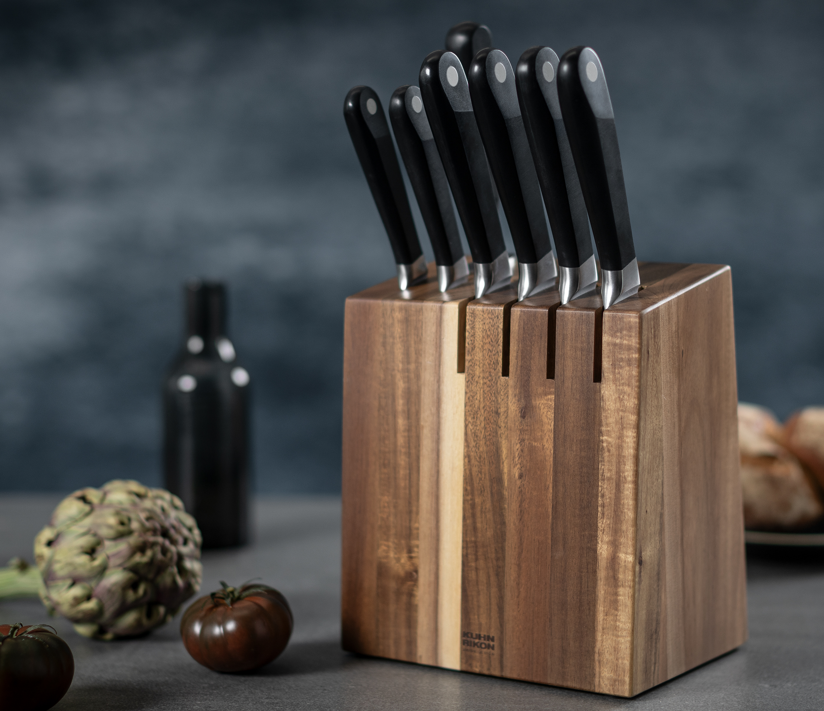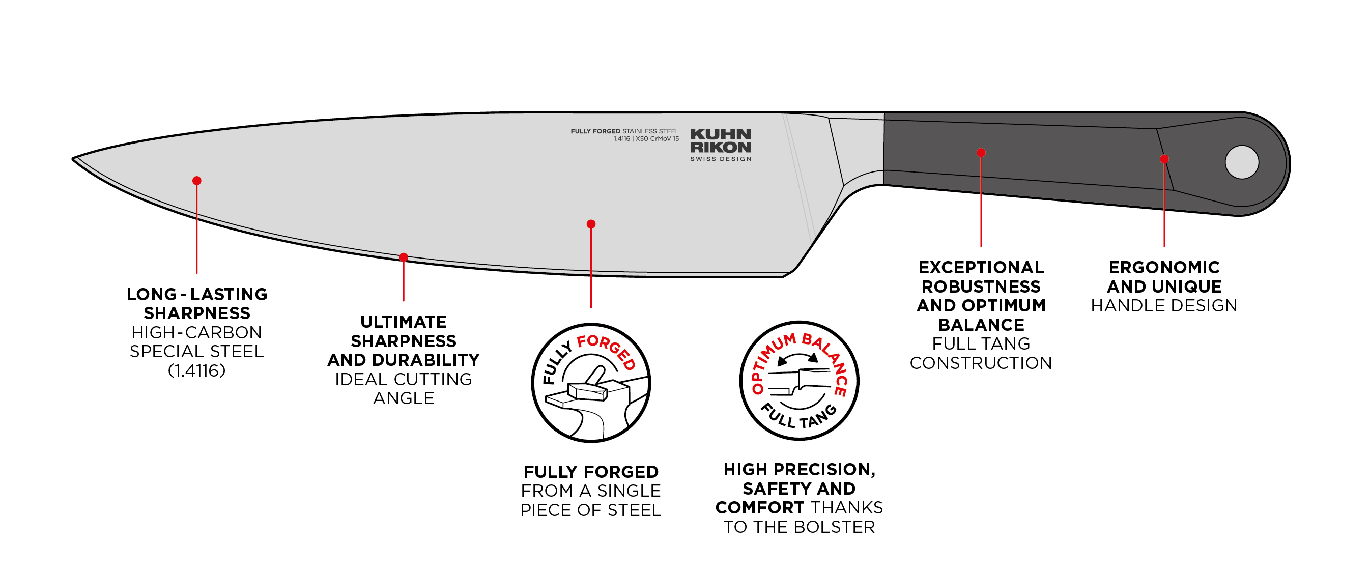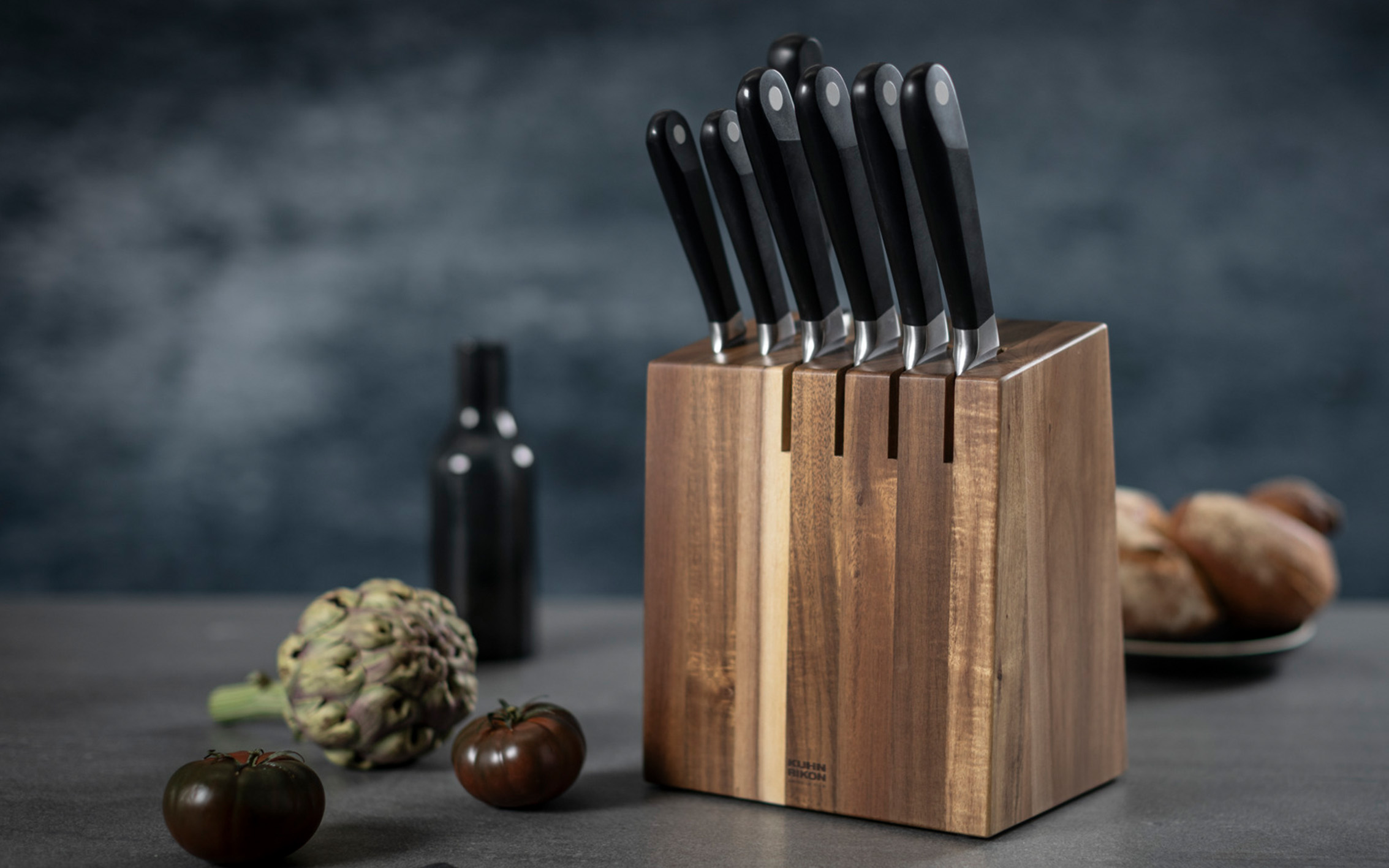 Good design is not just about looks. It supports the hand, guides the movement, creates safety – and yet still feels natural. At CULINARY FORGED, aesthetics and function merge into one. Reduced to the essentials, designed for everyday use. You can see it – and feel it with every cut. Developed in Rikon. Created for your kitchen.
