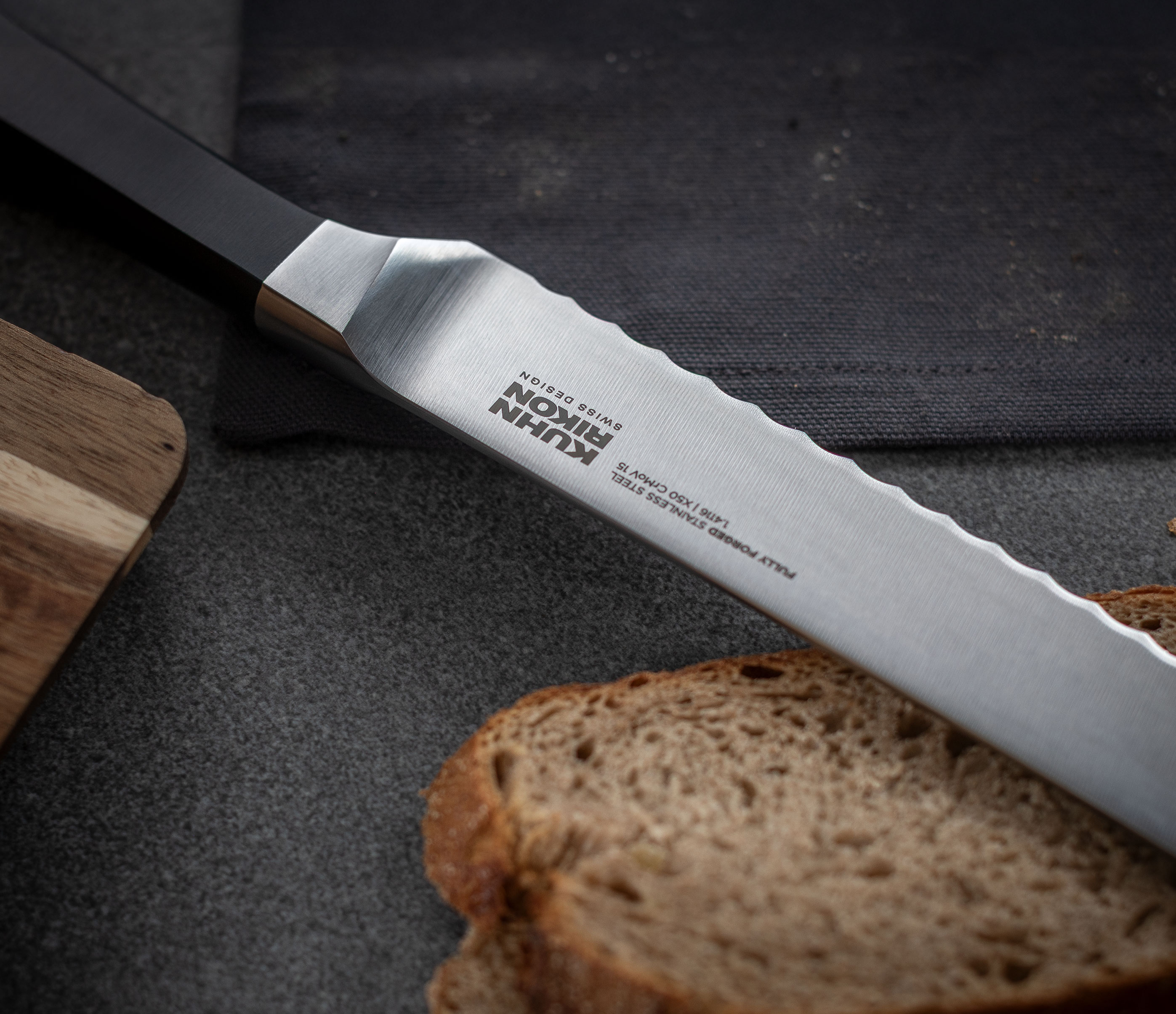 The long blade glides effortlessly and evenly through crusts without crushing the bread.