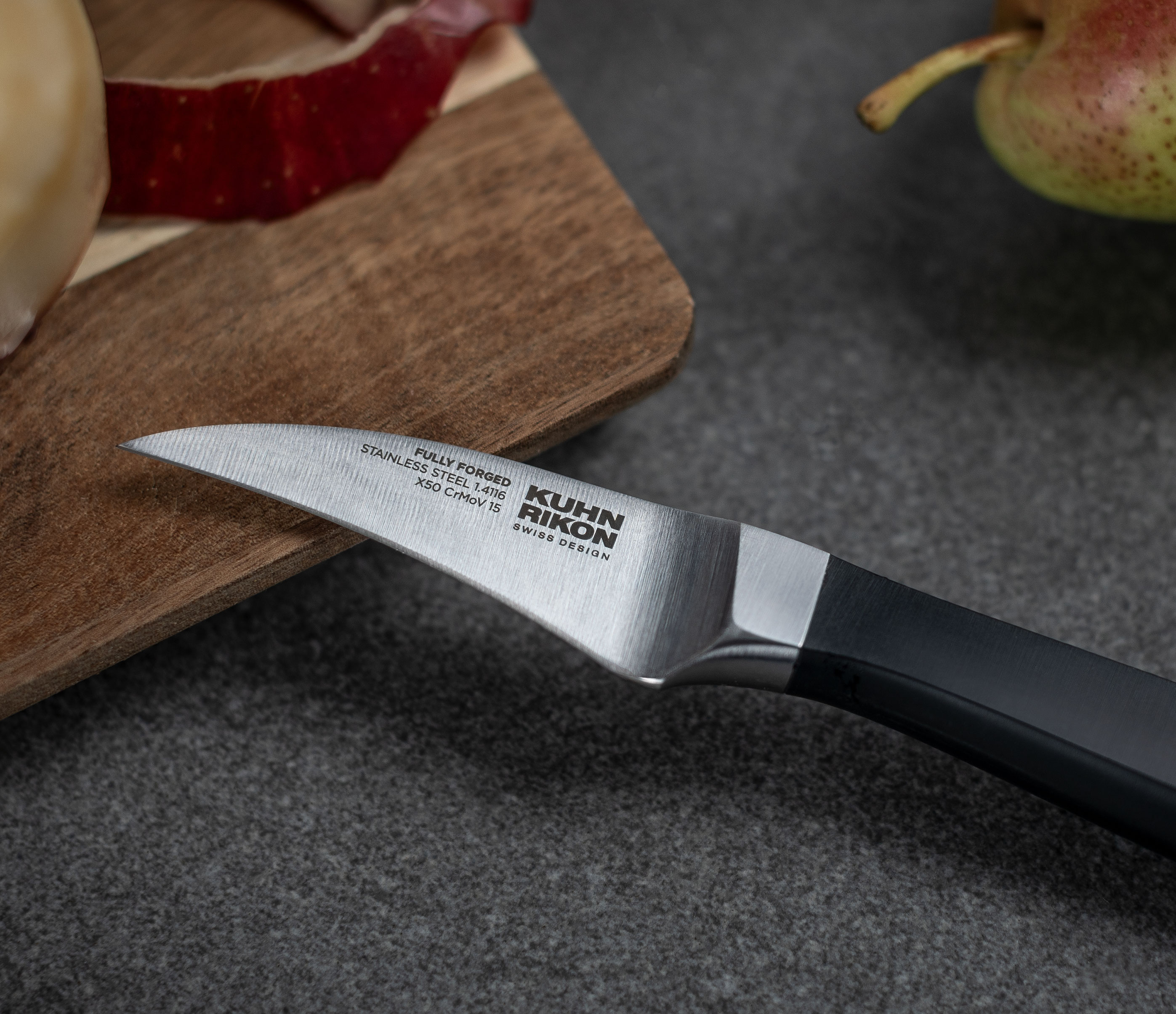 Perfect for peeling or decorative cutting thanks to its short, curved blade.