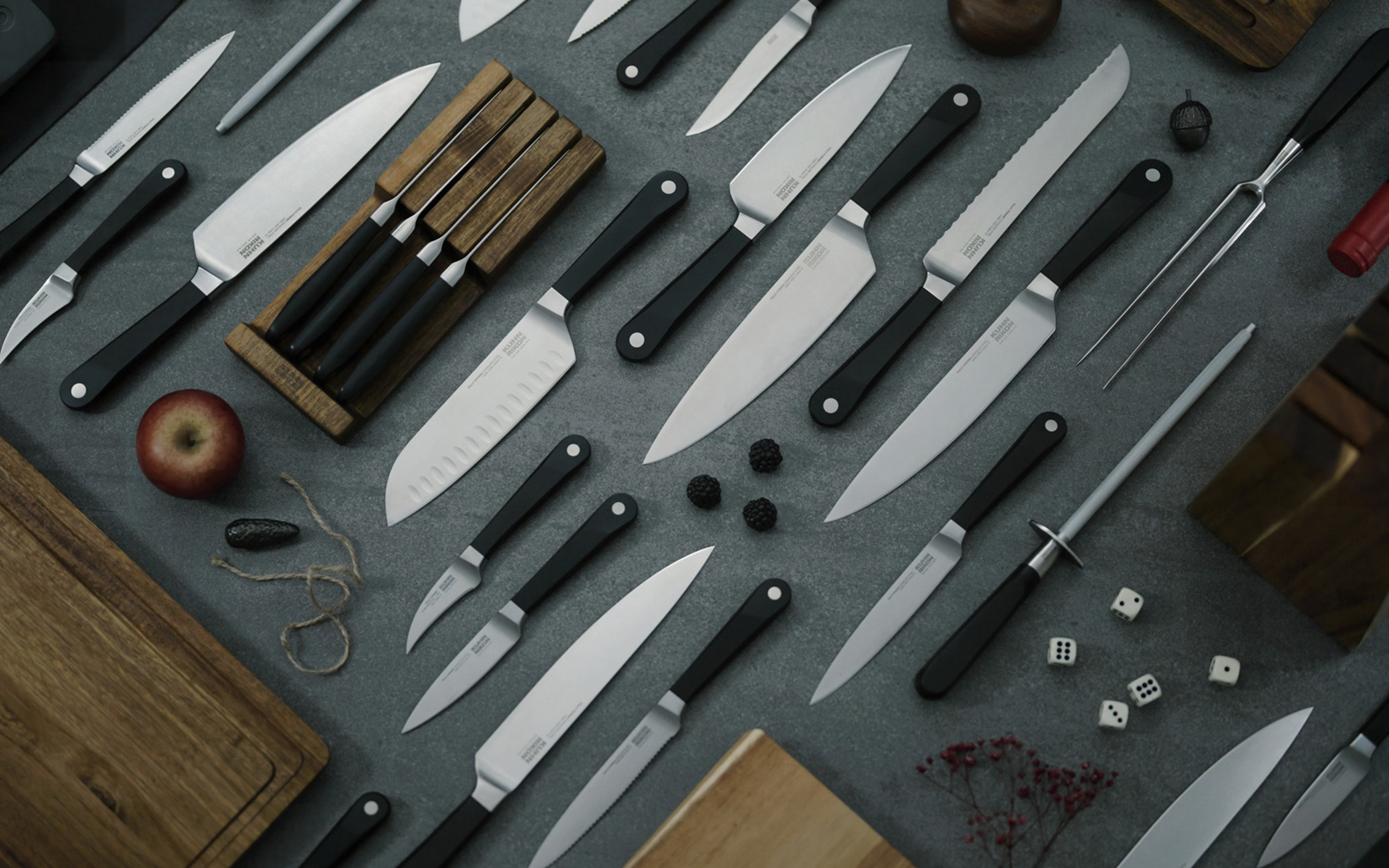 The powerful all-rounder for vegetables, meat and fish. Fits every hand thanks to two sizes.