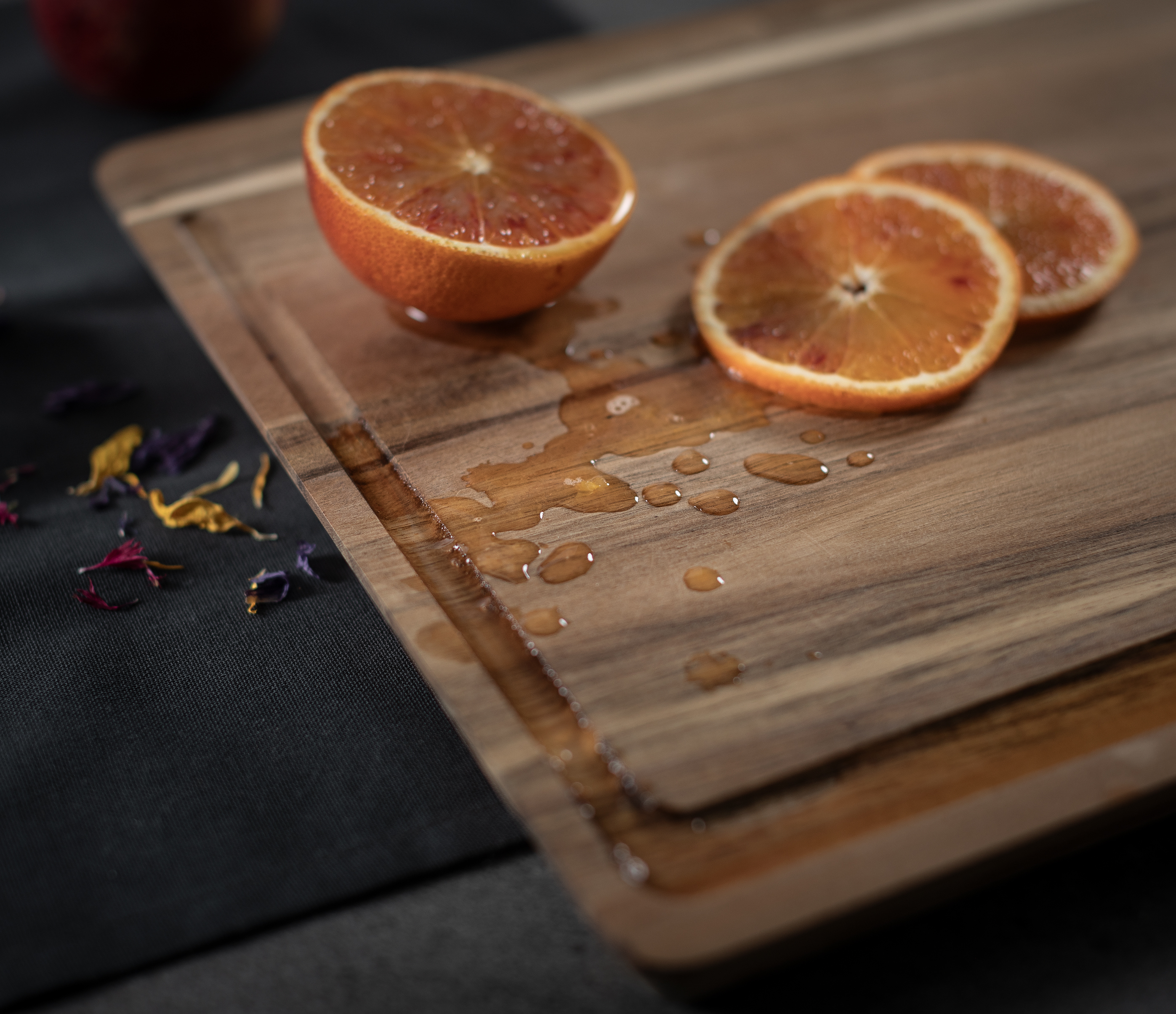 Flüssigkeiten laufen sauber in die Saftrille ohne sich anzusammeln.