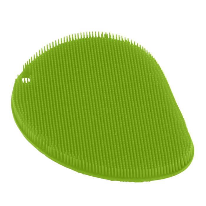 Over 1,500 silicone bristles clean glass, fine porcelain and smooth counter-tops. The second side has wavy silicone ribs for tougher scrubbing jobs plus a hard nylon tip to reach extra hard-to-remove dirt and grime. Safe to use on non-stick cookware.