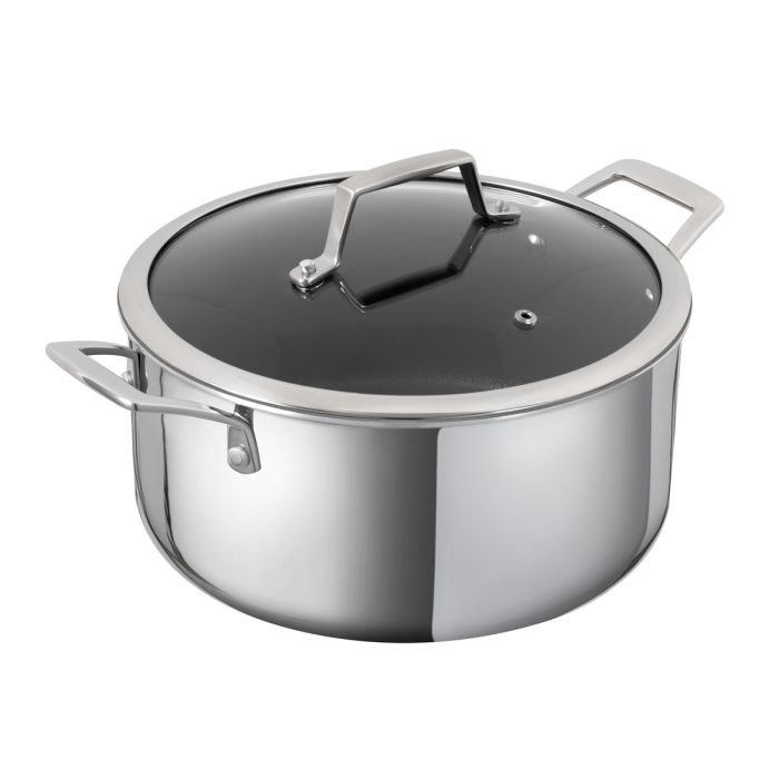 - See what’s cooking with the glass lids which have a large, easy-to-lift handle.